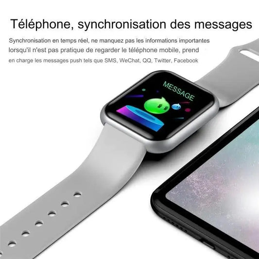 Notifications : Les montres intelligentes peuvent recevoir des notifications provenant d'un smartphone, comme des appels entrants, des messages texte, des e-mails, des notifications d'applications, et bien plus encore. Ces notifications sont généralement affichées sur l'écran de la montre et parfois accompagnées de vibrations.